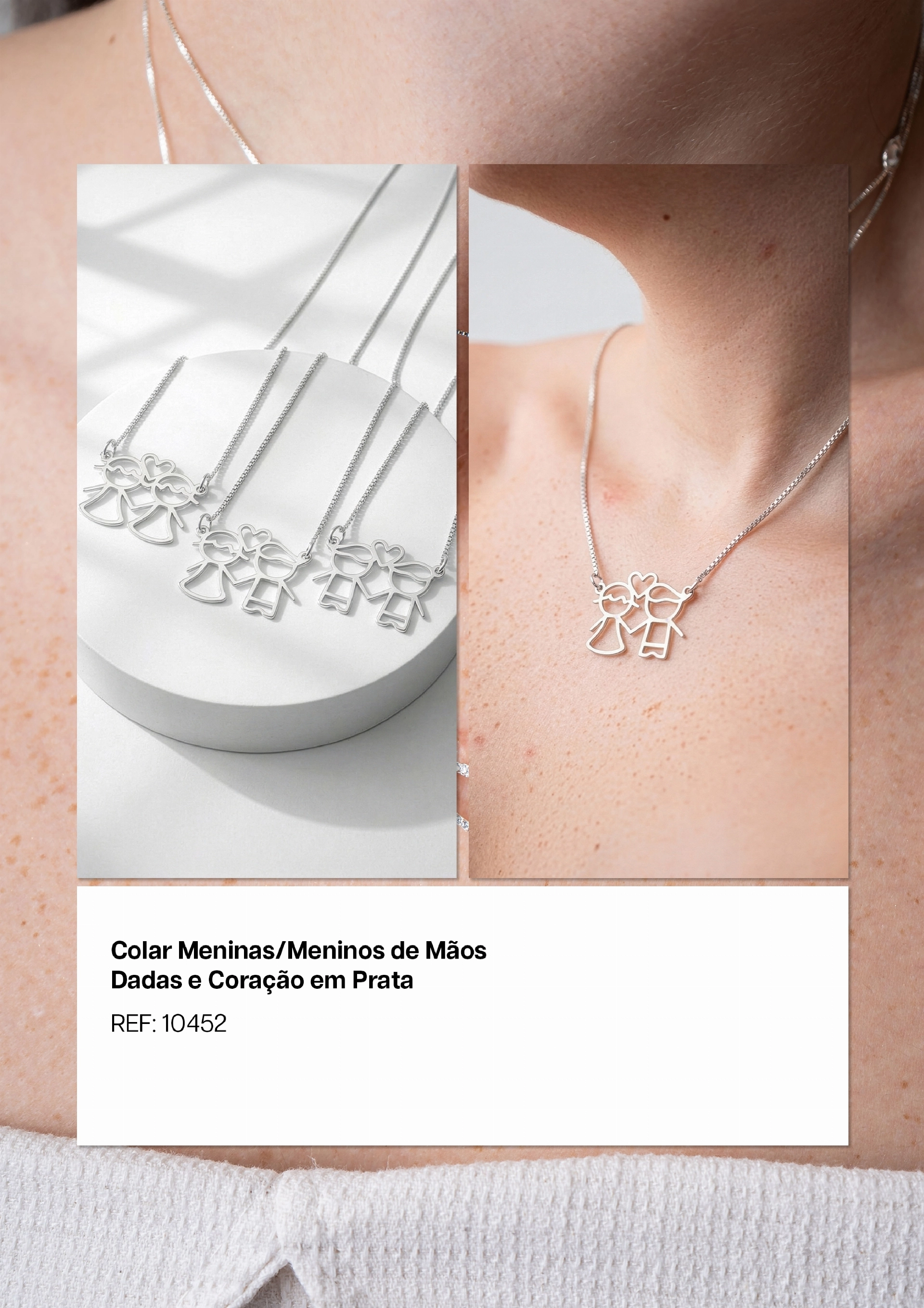 Colar Meninas/Meninos de Mãos Dadas e Coração em Prata