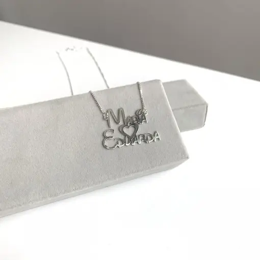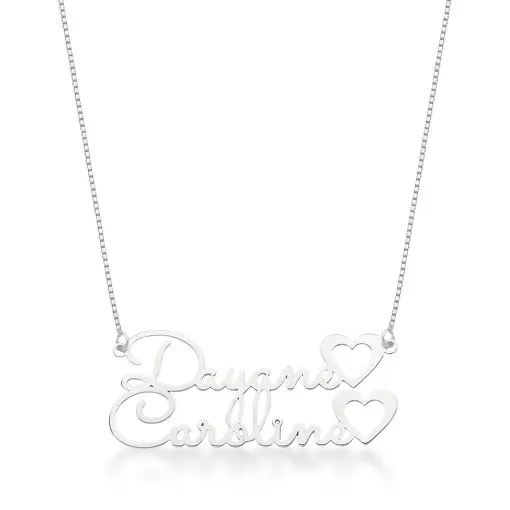 Colar Com Nome Duplo Com Desenho Entre Os Nomes